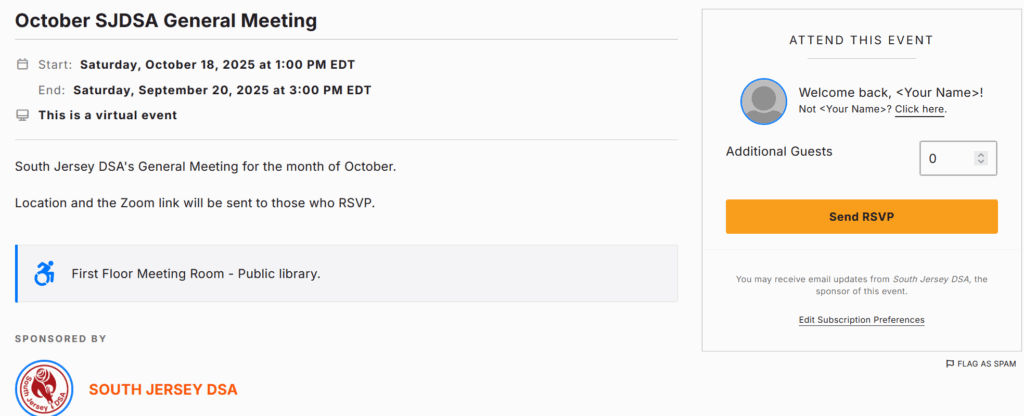 In order to access OpenSlides you must RSVP to our general meeting on Action Network.