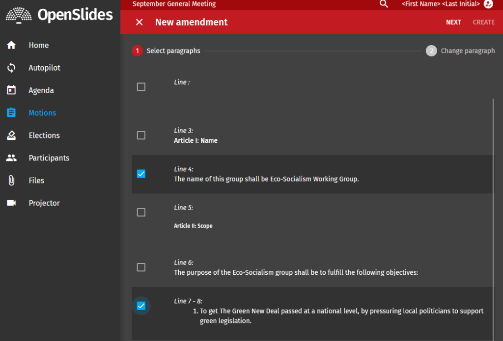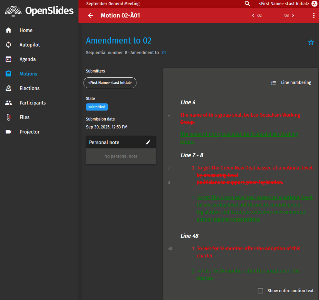If you’d like to amend a resolution or motion in openslides, here’s how: